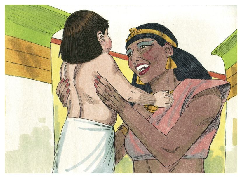 02:10 The child grew, and she brought him to Pharaoh’s daughter, and he became her son.