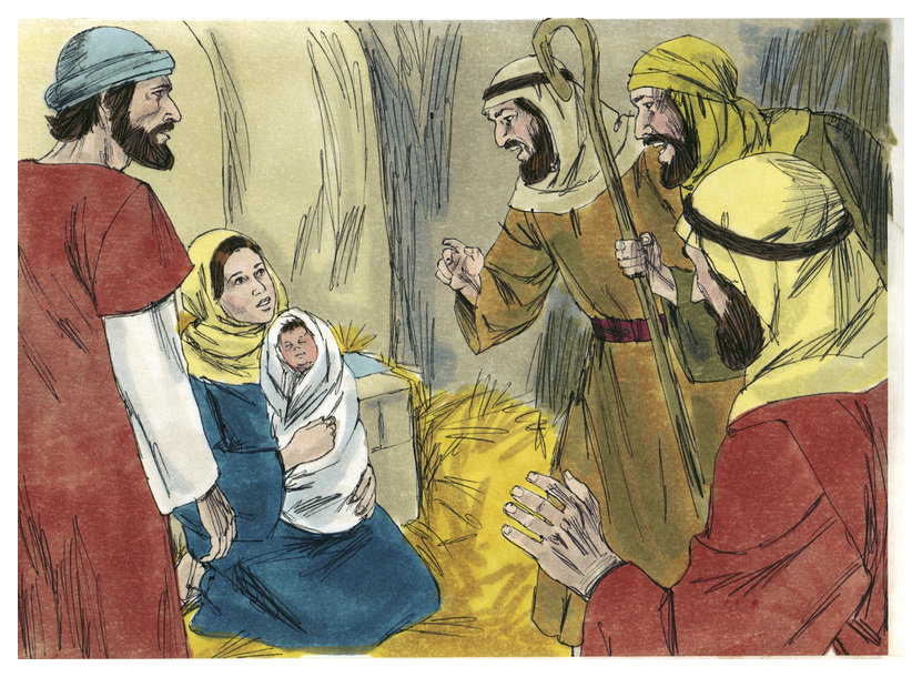 02:16 They came with haste and found both Mary and Joseph, and the baby was lying in the feeding trough. 02:17 When they saw it, they publicised widely the saying which was spoken to them about this child. 02:18 All who heard it wondered at the things which were spoken to them by the shepherds.