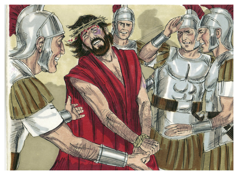 23:36 The soldiers also mocked him, coming to him and offering him vinegar, 23:37 and saying, “If you are the King of the Jews, save yourself!”